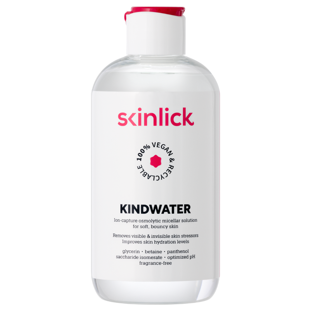 Skinlick Kindwater micelarna otopina nježno uklanja nečistoće, višak sebuma i šminku bez isušivanja te poštuje prirodni pH kože. Pogodna je za osjetljivu kožu i oči.